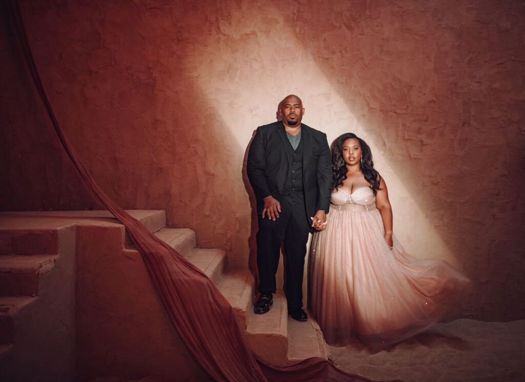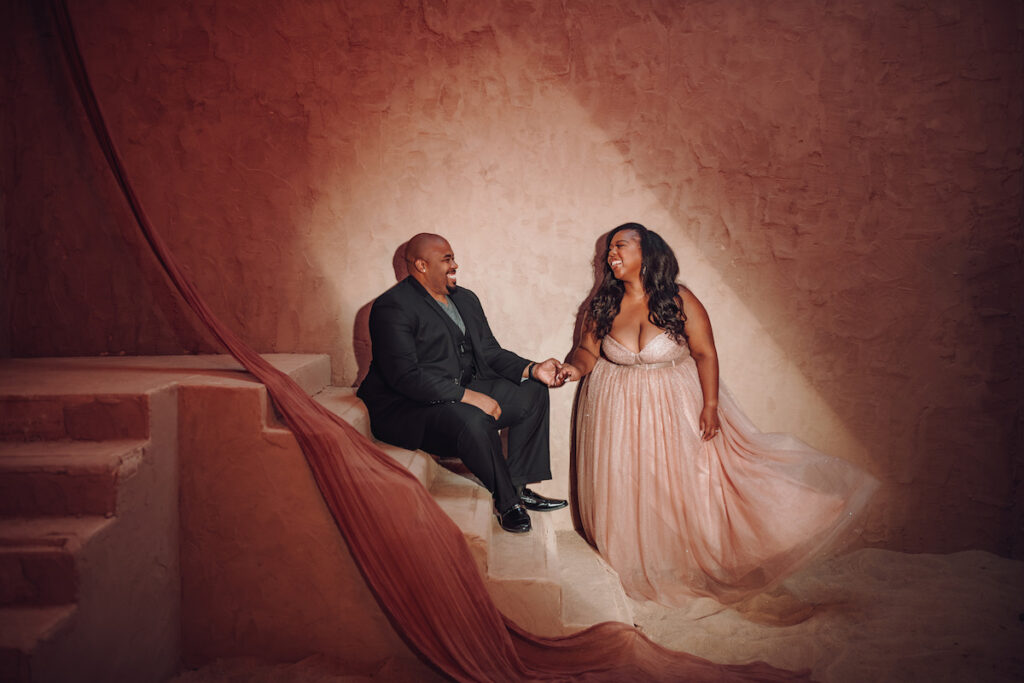 Luckily, Aisha found the newly opened Neon Noir Studio to shoot in. And after seeing pictures, Ashley and Jimmie jumped at the opportunity.
