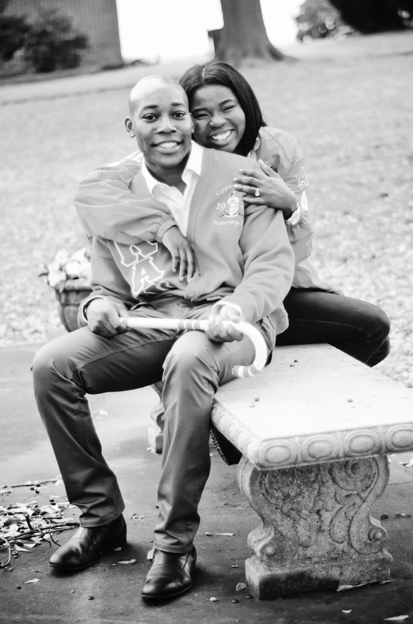 Our engagement shoot was nothing shy of the best! We had a blast! We had a three-themed E-session coordinated by our wedding planner, Mide Events. We started the shoot at a college campus grounds while we sported our sorority and fraternity paraphernalia, then we headed for lunch and a shoot at the theater – which was tons of fun! We ended our night at the Fernbank Museum for a romantic and sultry shoot. The day felt very natural, like an outing with my fiancé, and accompanied by Fotos by Fola and Mide events, only that the task at hand was to capture awesome pics, which we definitely did!