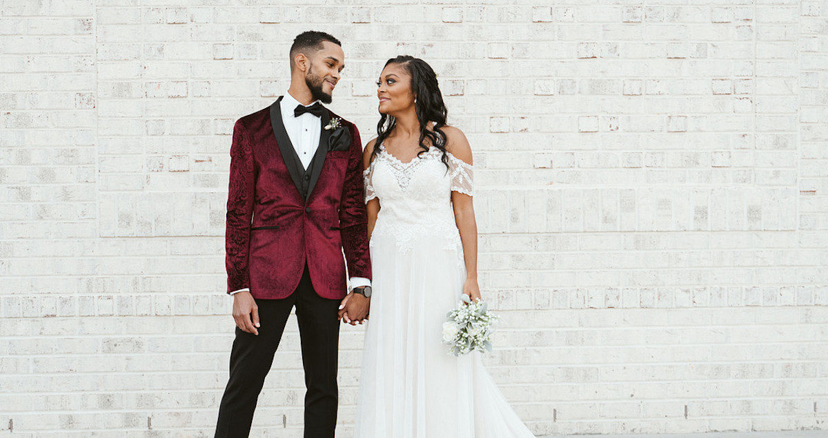 We both chose our own look. We agreed on the colors and found our own style from there. Jasmine found her dress at a small shop in Atlanta. She knew she wanted an A line dress with some lace. John found his suit at a shop in Atlanta as well. He wanted something with texture and there was a custom suit in the back that fit his style perfectly. From there, Jasmine kept it simple while John kept it fashionable. John even got all the guys shoes that matched his suit.