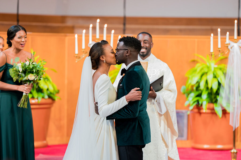 Green is a color that symbolizes growth, peace, and balance, everything that Andrew and Whitley’s love story encompasses. So, it was fitting that this calming yet captivating color was on full display on their wedding day.