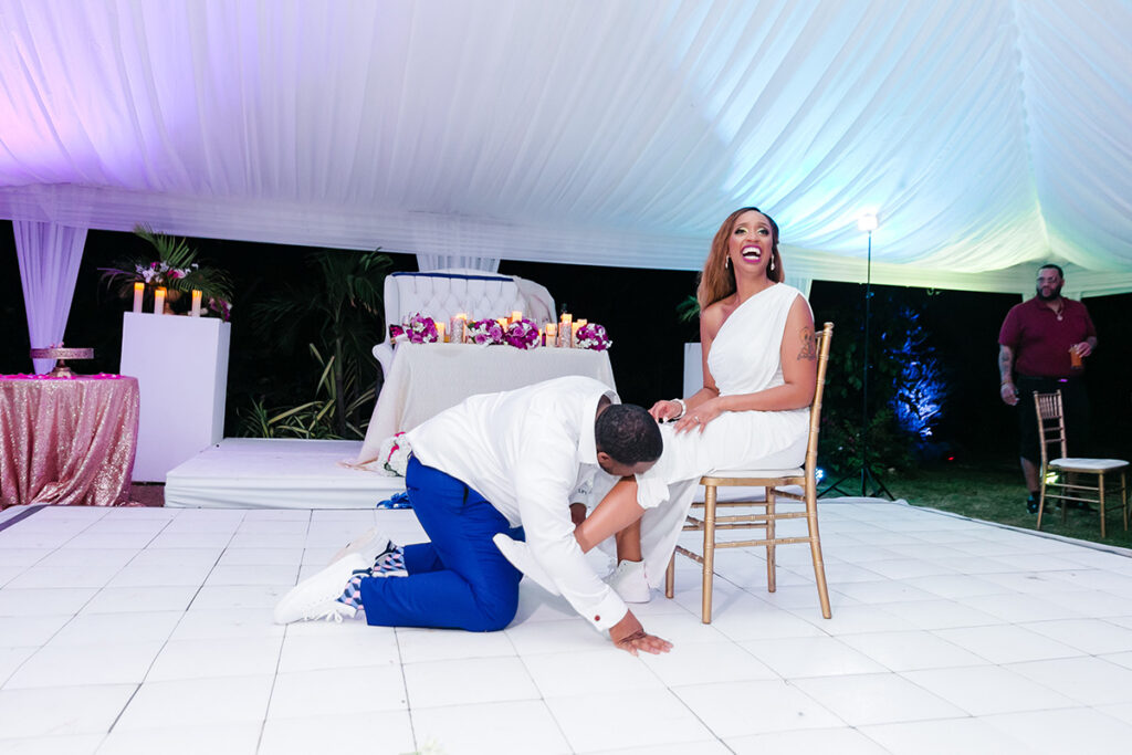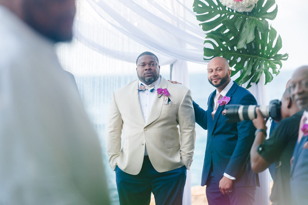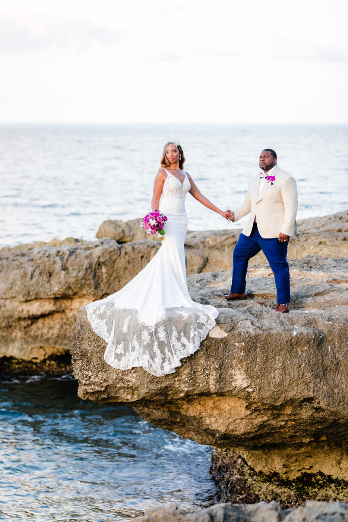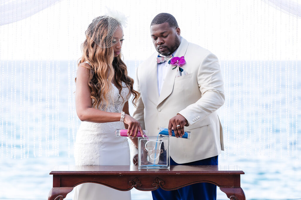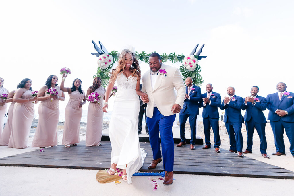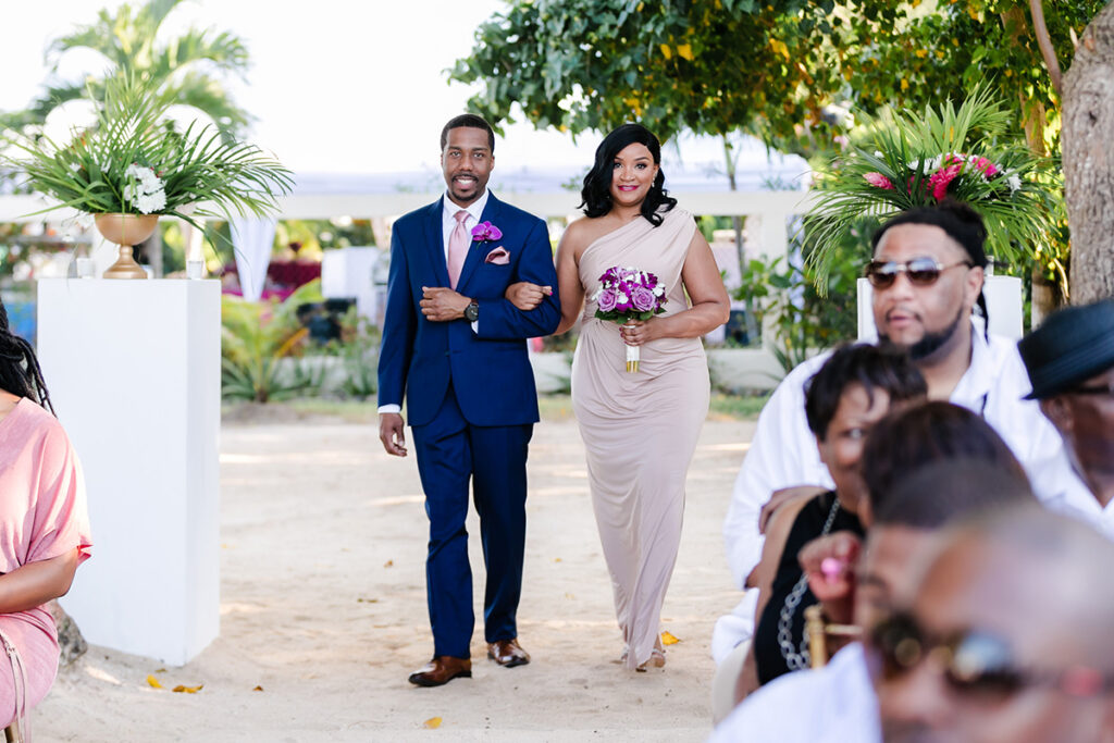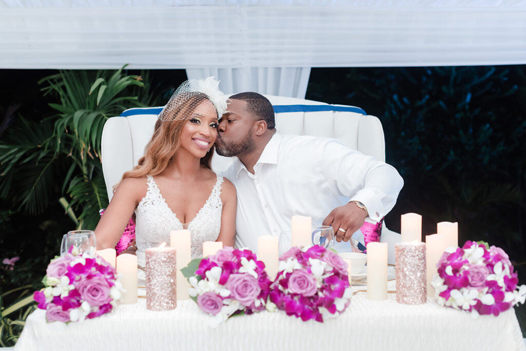 For their wedding, they headed to the beautiful island of Jamaica for a glamorous beach destination wedding. It was full of memorable moments, fabulous fashion, and dazzling decor. Read more about Lewis and Jannyse’s love story, and see all of the details from their lovely nuptials below.