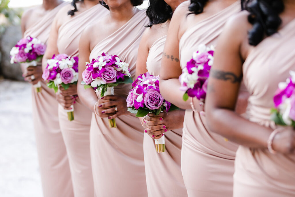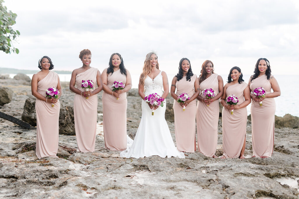 Bridesmaid dress shopping was difficult since so many lived in different cities. I decided on custom dresses from Pia Gladys Perey. This experience was extremely stressful. So stressful that we received the dresses on the day before my sisters left to come to Jamaica. Whew!