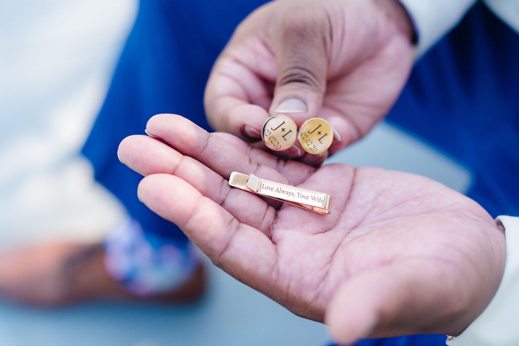 - Gifts for one another: I gifted him with a personalized cufflinks and tie bar (even though he changed to a bowtie at the last minute). I also surprised him with an upgraded wedding ring. Lewis gifted me with diamond earrings.