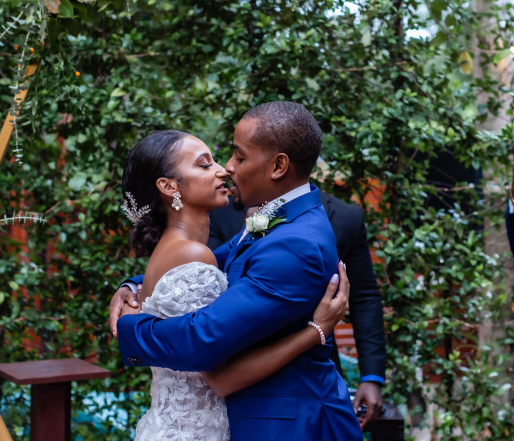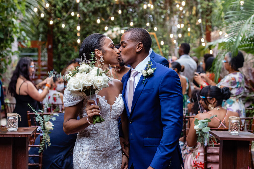 Due to the pandemic, Kimberley and Brandon had to postpone their wedding twice. They initially planned to wed in Los Cabos, Mexico before deciding to marry in Miami, FL. Kimberley shares, “This was our third time planning our wedding because of the pandemic and all challenges faced. Nichelle from Designs by Nishy really came through for us. We planned our wedding in a little over 2 weeks. As stressful as it was having to go through wedding shopping three times, the third time was the charm. Everything worked out the way it was meant to be and the wedding turned out beautifully!”