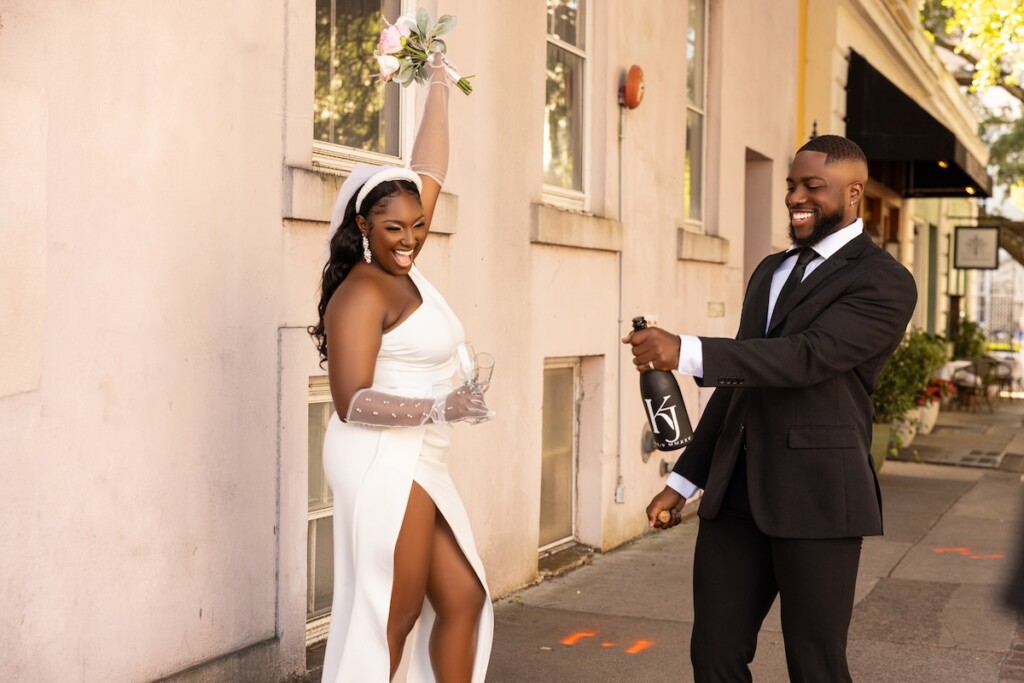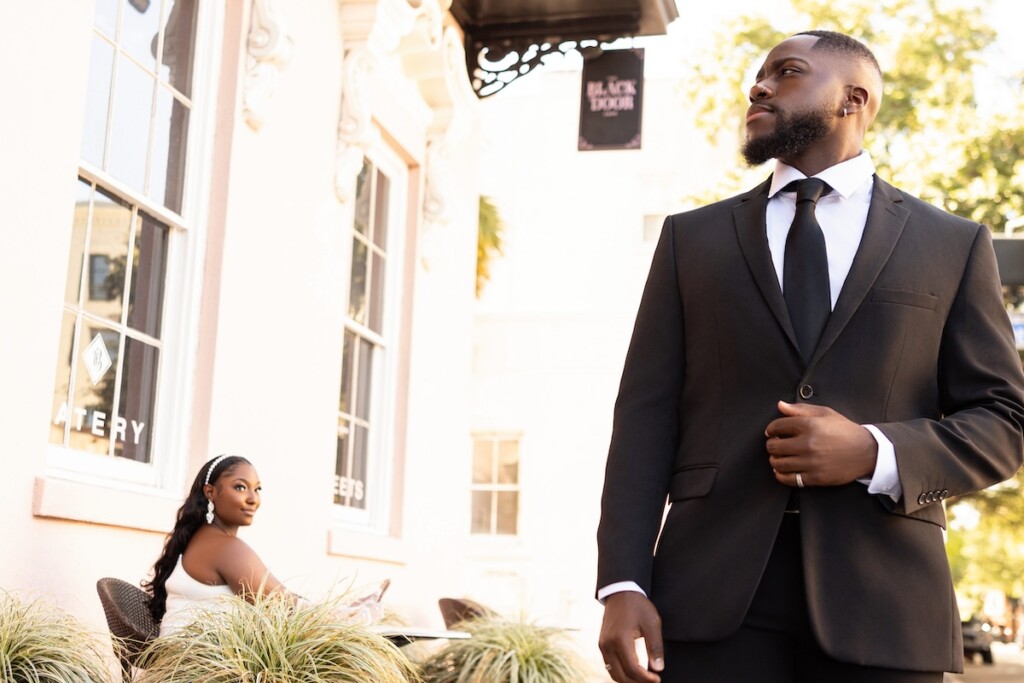 “We are both Charlestonians,” Jasmine shared, “so we made sure to use our beloved city as our setting. The photos are carefully curated to tell the story of how we met in passing, fell in love on the first date, and will forever be bonded in Holy Matrimony.”