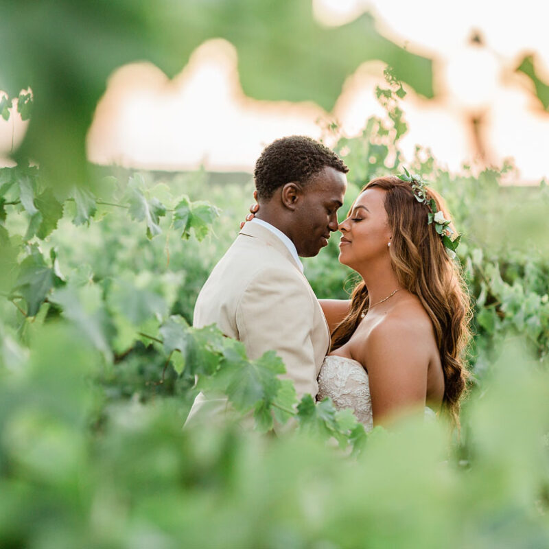 Read more about their beautiful rustic vineyard wedding, special moments with family, dress details, and surprises below!