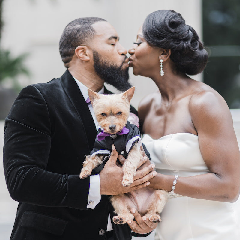 Couple’s simple glam wedding in Houston, Texas features romance, a cute pup, and lots of love!