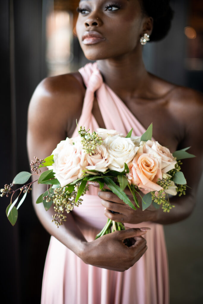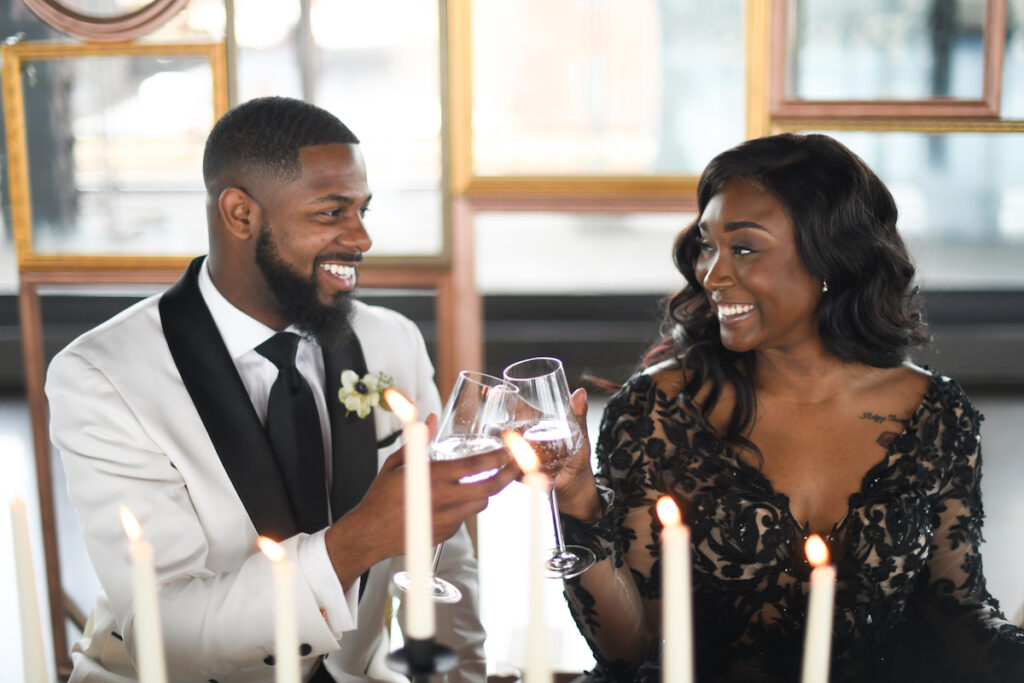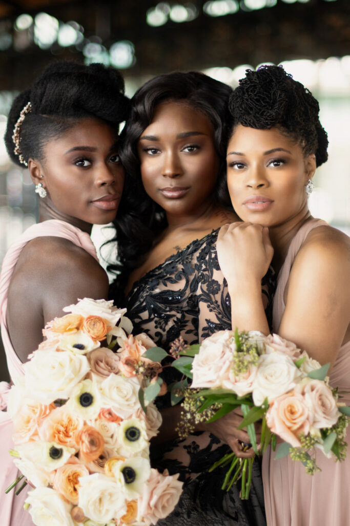 “I chose to work with a diverse group of men and women touching on all shades of color from the Black community because that’s the client I’m diligently working to attract for my business. This black dress isn’t as traditional for a black bride, but I wanted to show her how she could still be just as glam in something so bold.