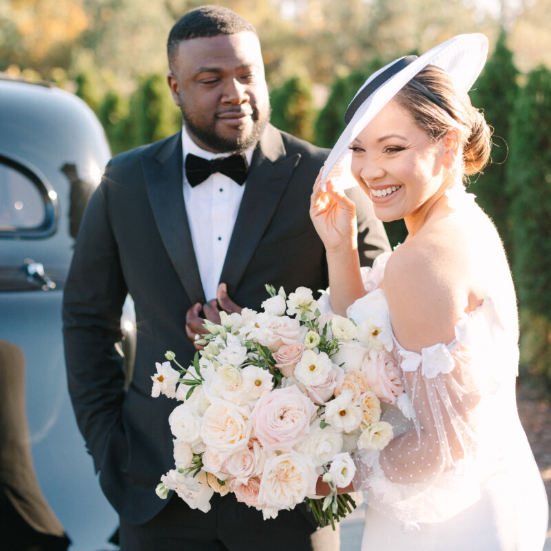 With Palisades Country Club’s clubhouse being the perfect backdrop for the big day, the bride and groom posed in a classic 1937 Packard provided by Top Hat Rides. The classic details didn’t stop there with Sofia beautifully adorned in a delicate bridal hat which definitely gave us vintage Chanel vibes.